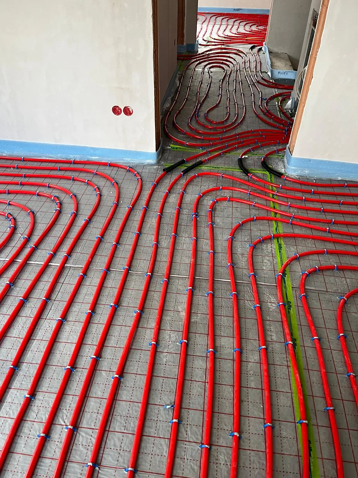 Unsere Expertise reicht über den Estrich hinaus: Wir integrieren auf Wunsch direkt die passende Fußbodenheizung – ideal abgestimmt auf Raum, Nutzung und Aufbauhöhe. Das Ergebnis: ein effizienter, komfortabler Bodenaufbau aus einer Hand – belastbar, langlebig und zukunftssicher.